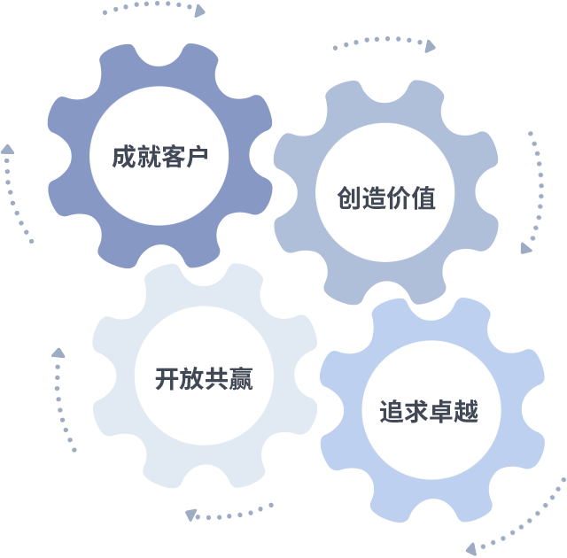 成就客户是一切决策的出发点,创造价值是衡量所有工作的标准,追求卓越是88858cc永利做事做人的态度,开放共赢是88858cc永利的格局也是最终的结果。价值观的齿轮环环相扣,推动着组织里的每个人不断向前。